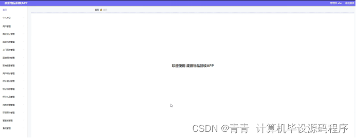 管理员登陆系统后,可以对首页、个人中心、用户管理、回收地址管理、回收网点管理、上门回收管理、回收预约管理、取消信息管理、用户积分管理、积分增加管理、积分扣除管理、积分礼品管理、兑换申请管理、环保百科管理、留言板管理、系统管理等功能进行相应操作,如图5-9所示。