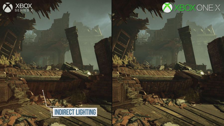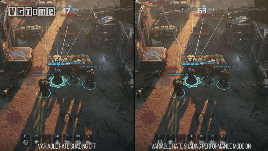 《战争机器 战术小队》中运用的 VRS 还不够成熟(一级VRS,Tier One),在游戏过程中有些时候会因该技术出现画面噪点。但在《战争机器5》次世代版中(二级VRS,Tier Two)该情况已经得到大幅改进。二级 VRS 能让开发者精确调整渲染速率,进行更细分地调整。制作组采用了边缘探测过滤器检测渲染速率,并通过一系列 8*8 像素区域将不同速率的部分区分出来。