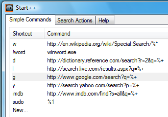 Start++ is a small add-on application that lets you create aliases of words and characters to commands or searches. You can set the commands to run with administrator privileges. You can even save commands as “Startlets” and share them with your friends.