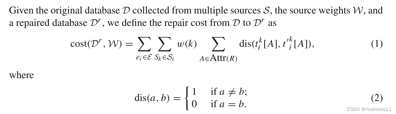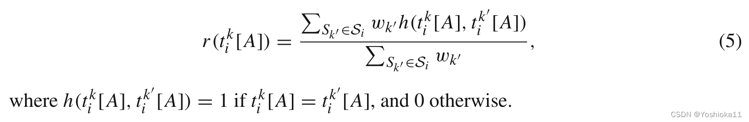 如果元组不符合规则,则可以说明该元组可能存在着错误。数据源的可靠性通过其他源来确定。公式如下: