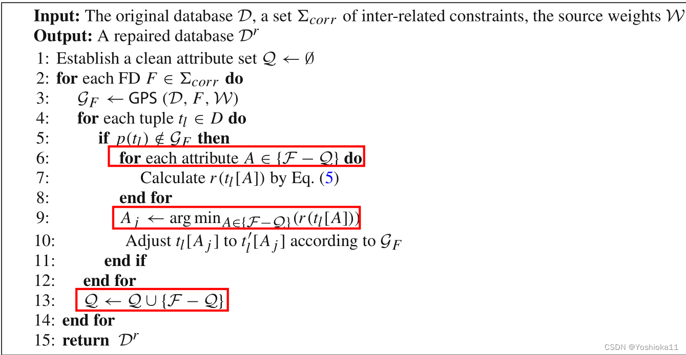 该算法就是通过规则、数据源的可信度来进行恢复。伪代码如下: