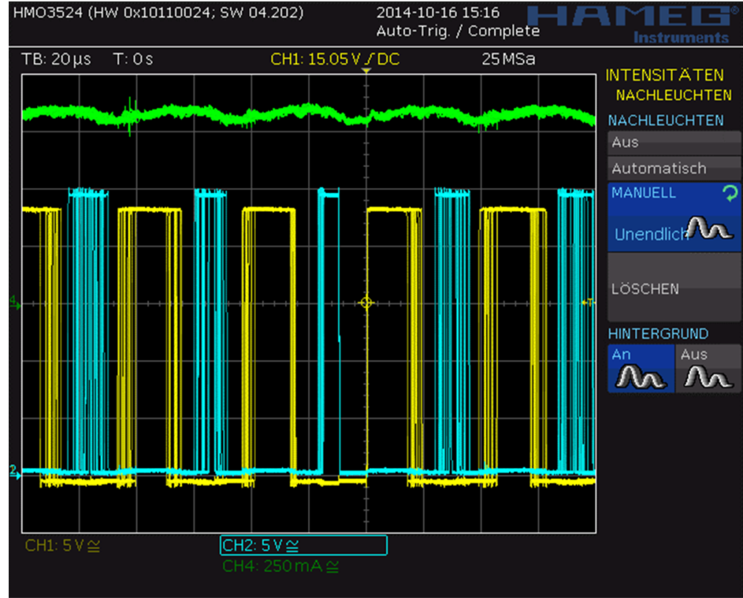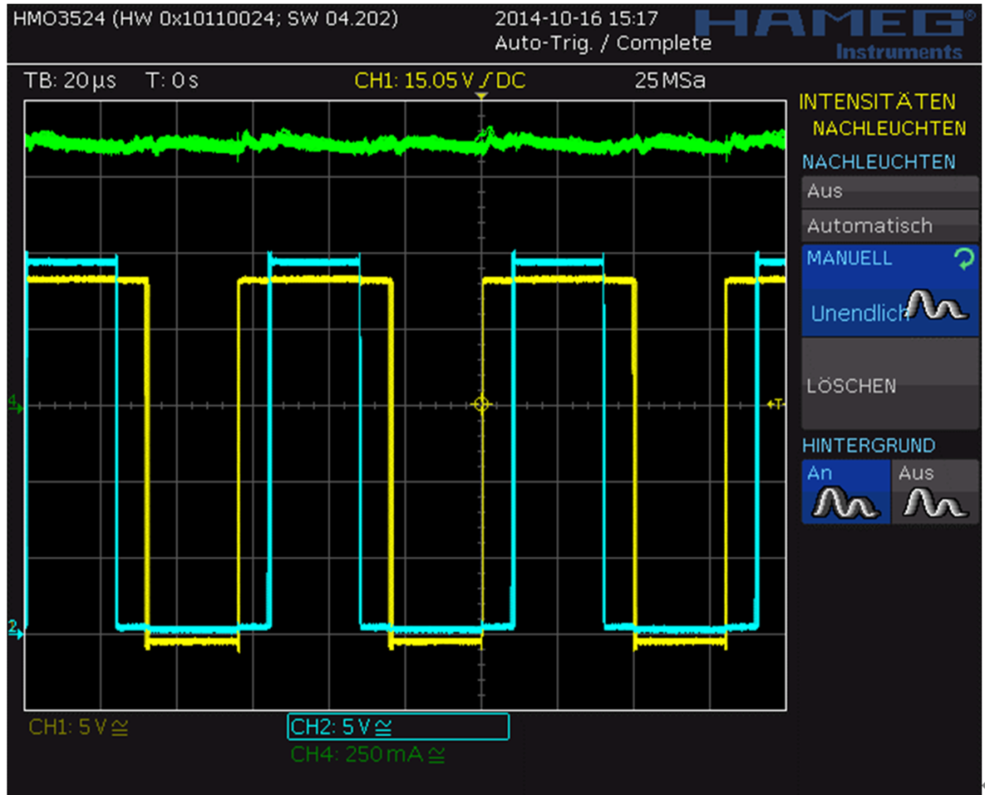 电流控制的SpreadCycle™(高精度斩波算法)斩波模式下电机相位和线圈电流的放大PWM视图