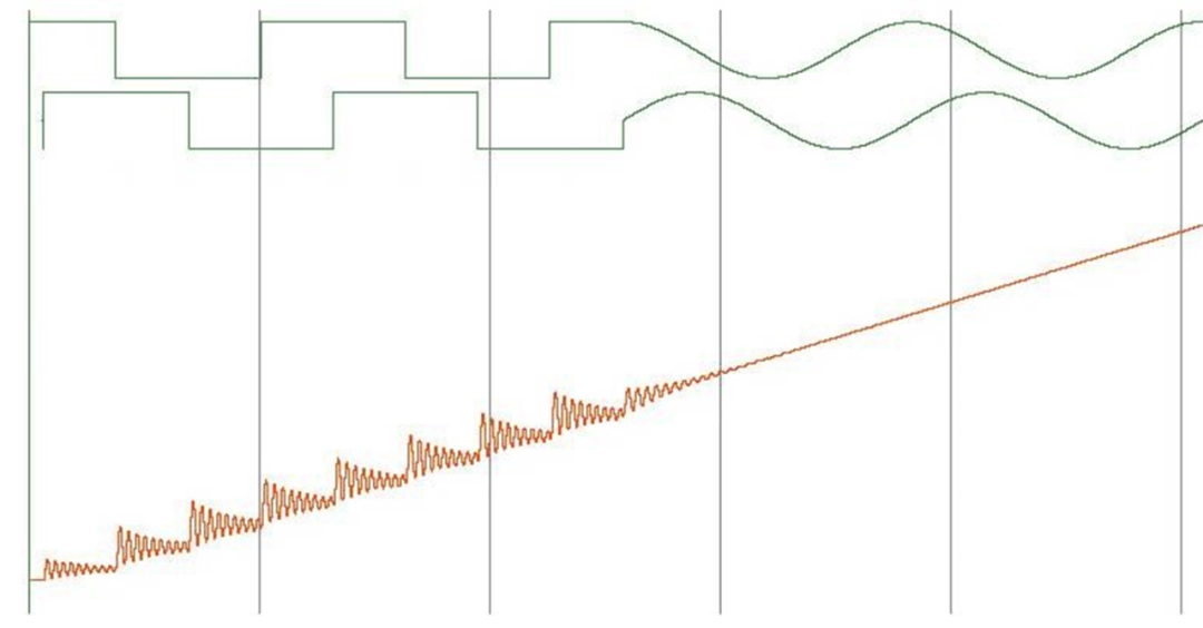 在完整的电气旋转中,当电流的符号(方向)发生变化时,这会导致正弦波的过零区域周围出现一个平台。这个平台的影响是电机绕组中电流为零的一小段时间,这意味着根本没有扭矩。这会导致摆动和振动,尤其是在较低的速度下。