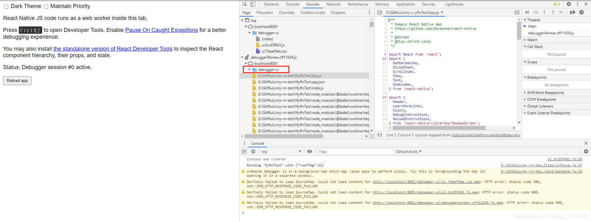 Error: Unable to resolve module `./debugger-ui/debuggerWorker.cff11639.js` from ``: None of these files exist:* debugger-ui\debuggerWorker.cff11639.js(.native|.native.js|.js|.native.json|.json|.native.ts|.ts|.native.tsx|.tsx)* debugger-ui\debuggerWorker.cff11639.js\index(.native|.native.js|.js|.native.json|.json|.native.ts|.ts|.native.tsx|.tsx)at ModuleResolver.resolveDependency (D:\gitPath\my-rn-test\MyRnTest\node_modules\metro\src\node-haste\DependencyGraph\ModuleResolution.js:163:15)at ResolutionRequest.resolveDependency (D:\gitPath\my-rn-test\MyRnTest\node_modules\metro\src\node-haste\DependencyGraph\ResolutionRequest.js:52:18)at DependencyGraph.resolveDependency (D:\gitPath\my-rn-test\MyRnTest\node_modules\metro\src\node-haste\DependencyGraph.js:287:16) at D:\gitPath\my-rn-test\MyRnTest\node_modules\metro\src\lib\transformHelpers.js:267:42at Server. (D:\gitPath\my-rn-test\MyRnTest\node_modules\metro\src\Server.js:841:41)at Generator.next ()at asyncGeneratorStep (D:\gitPath\my-rn-test\MyRnTest\node_modules\metro\src\Server.js:99:24)at _next (D:\gitPath\my-rn-test\MyRnTest\node_modules\metro\src\Server.js:119:9)