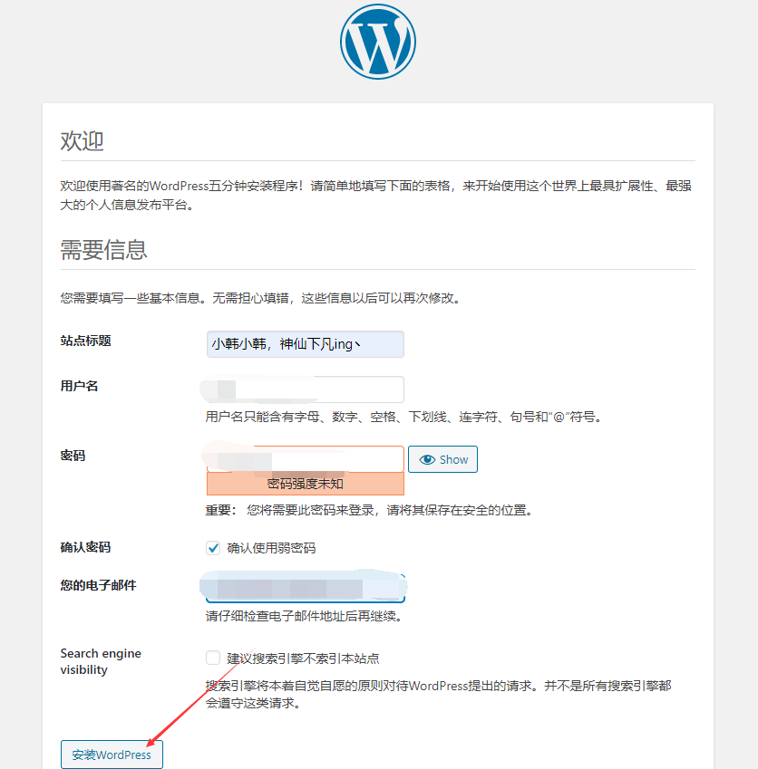 1)安装wordpress