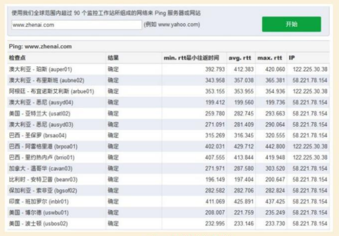 还可以利用在线网站17CE(https://www.17ce.com)进行全国多地区的ping服务器操作,然后对
