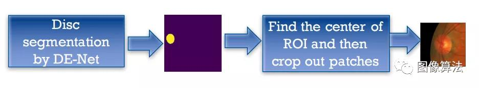 数据预设我们通过使用预先训练的模型:感知光盘的集合网络(DE-Net)裁剪600×600大小的感兴趣区域(ROI)补丁来减少训练图像与验证图像之间的差异。这种数据处理还可以使模型专注于学习最重要的像素信息。