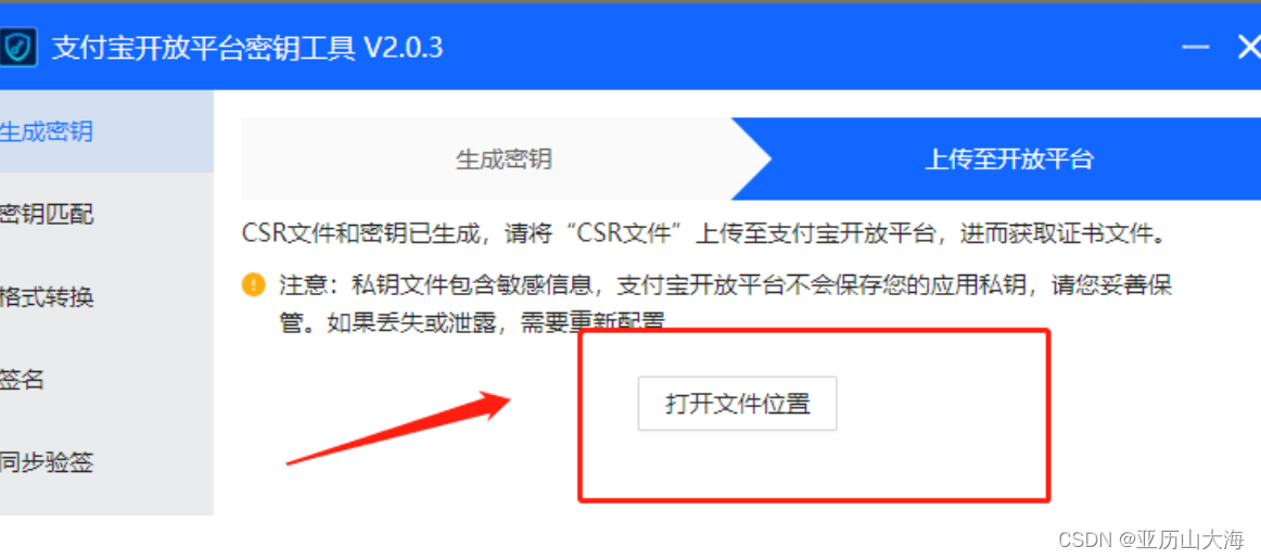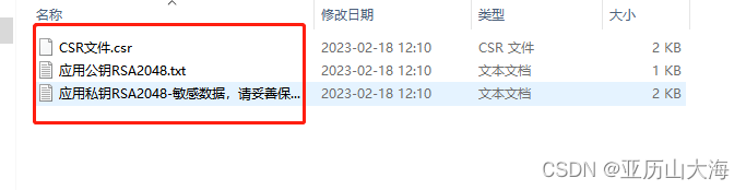 到这里之后继续点击“配置密钥”的下一步,把生成的CSR文件上传后。会有三个文件生成(重要)