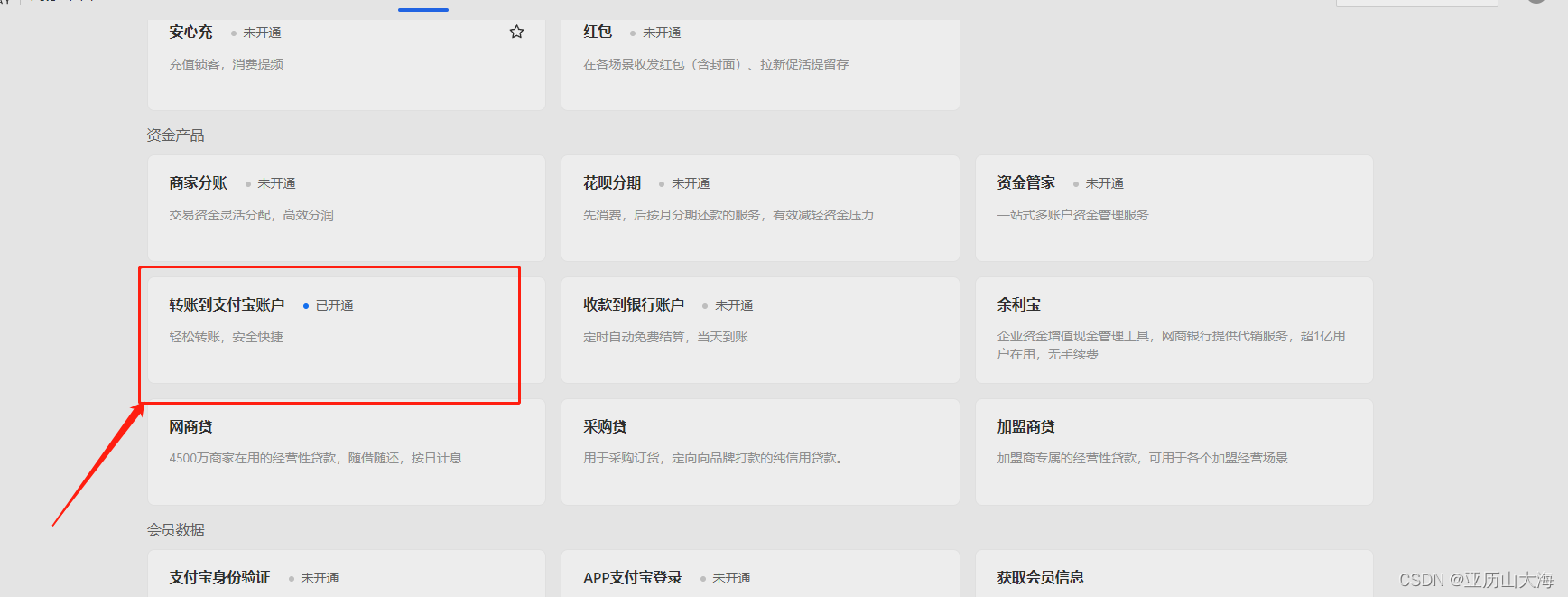 一、申请开通转账到支付宝账户(一般一个工作日申请完成)