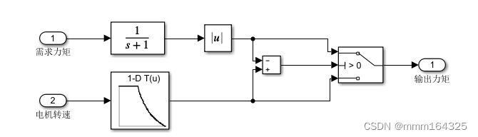通过输入需求力矩输入到假设的电机模型中,得到输出力矩,电机输出的力矩与电机外特性曲线所得电机力矩相比较