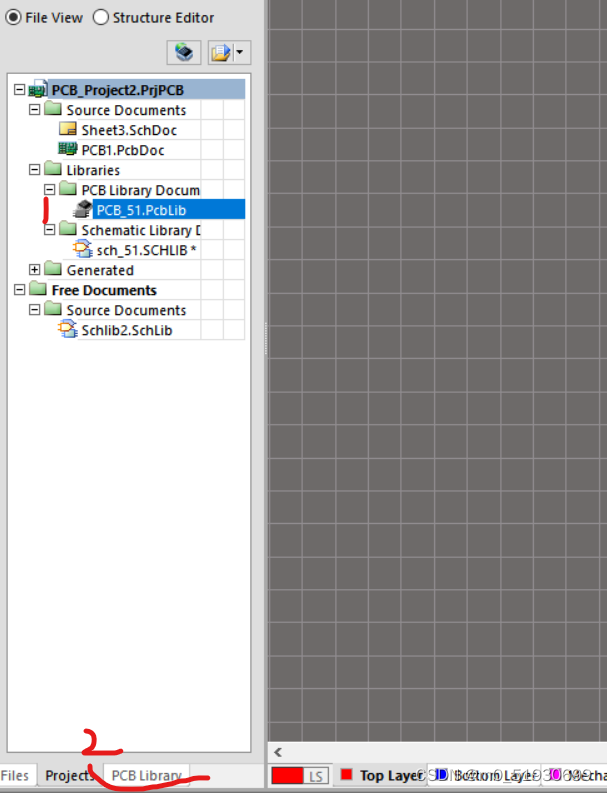 点击1后,会出现2,然后点击2而进入封装库的绘制中,如果2没有的话,同原理图库操作类似