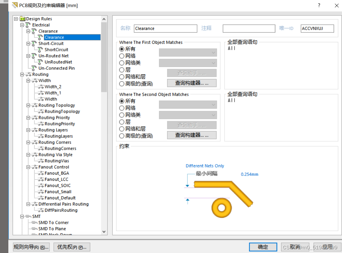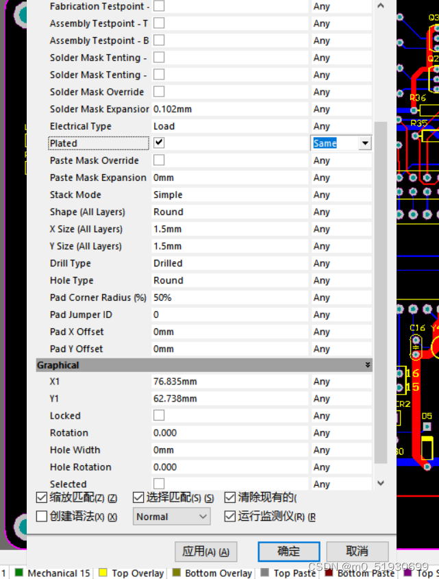 然后进行规则校验,将错误一点一点的改过来,对照着错误规则里找到相同的英文进行修改,对于本实验中存在着警告,需要将下图的镀金的给勾选上,利用上面批量电阻的方法进行批量修改,最后点击清除退出修改。