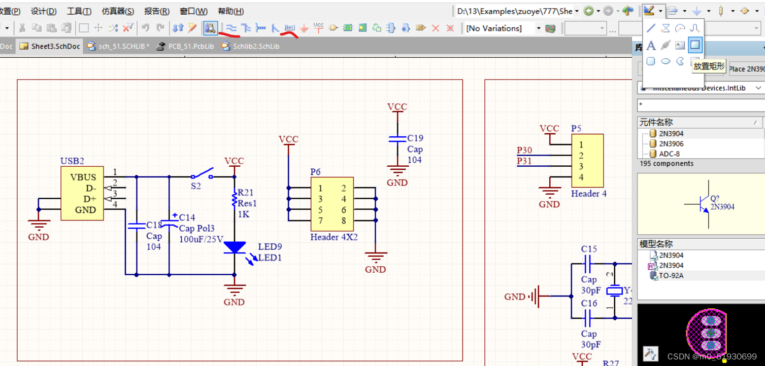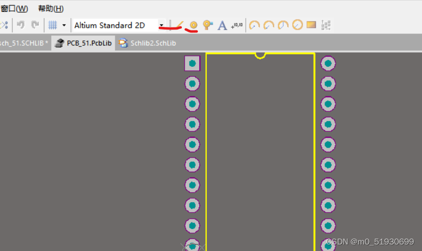 绘制51单片机的封装时,可以通过上边的工具手动绘制