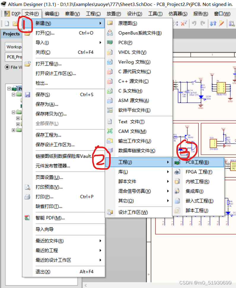 首先新建一个打开Altium Designer,文件→新建→工程→pcb工程