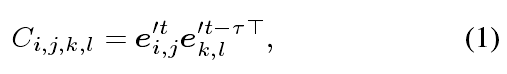 ,其中 Ci,j,k,l 表示在 t 和 t-τ 时刻 点p(i, j) 和 点 (k, l)之间的嵌入式相似度。在这里,一个点映射的是 特征图f 或者 e`。