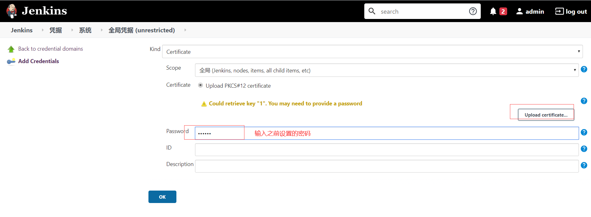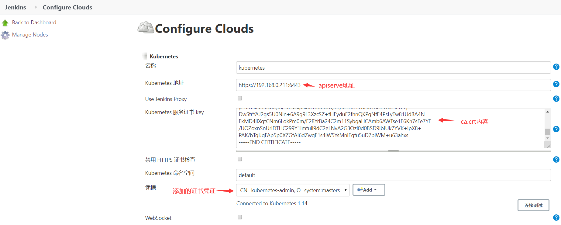 将ca.crt中的内容填写到 Kubernetes server certificate key 字段