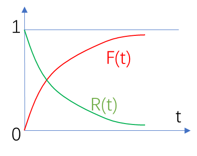 - 故障分布函数(故障概率,不可靠度) F(t) = P(T