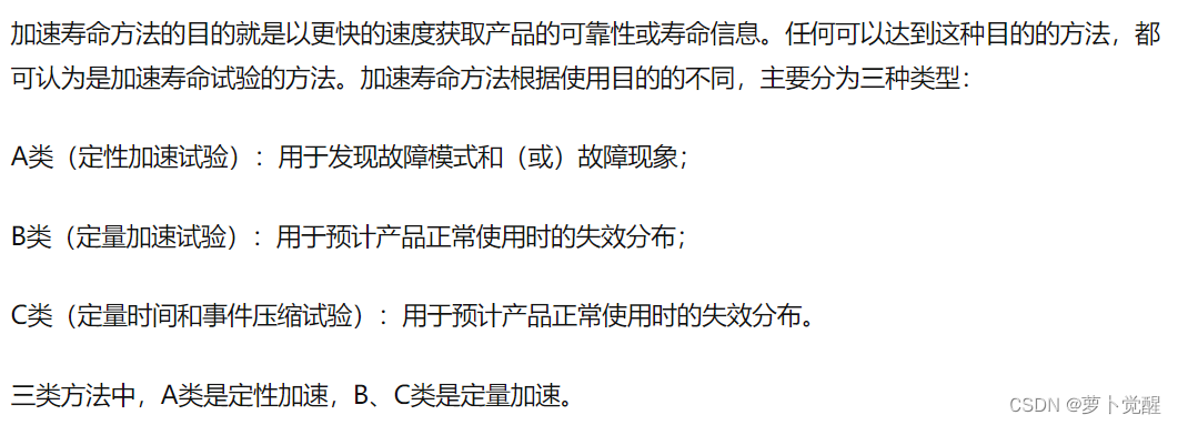 在不改变失效机理的情况下,加大应力,加快产品失效,缩短试验时间,估计出正常使用下的可靠性指标。