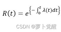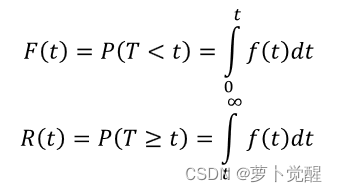 - 可靠度函数 R(t) = P(T>=t) (P表示概率)