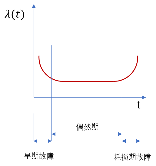 威布尔分布之所以好用,是因为通过调整不同参数,可以表征整个产品生命周期,即可靠性常提到的浴盆曲线,分为早期失效、随机失效和老化失效三个阶段。