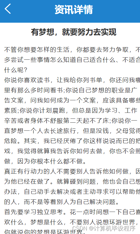 公告详细信息界面能够展示公告的详细信息,公告详细信息能够展示在界面中是将公告的编号传递到到后台的逻辑程序,然后SQL语句将该公告的具体情况发送给后台的服务器。