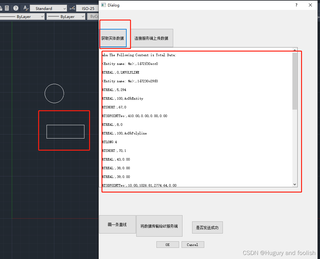 1) 实现的功能是,通过手动选择的方式获取到Auto CAD中实体的数据并将其传输到QT中。