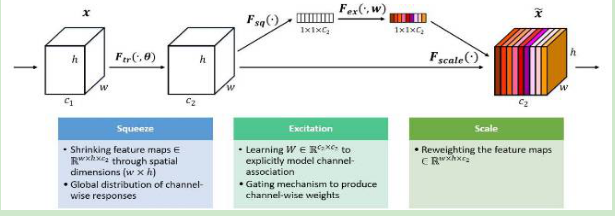 SENet是ILSCRV2017冠军。SENet包含特征压缩、激发和重配权重等过程。SENet在不引入新的空间维度的前提下,使用了“特征重标定”的策略对特征进行处理;通过学习获取每个特征通道的重要程度,根据重要性抑制或提升相应的特征,最终在当年的比赛测试集中达到2.251%的Top-5错误率。