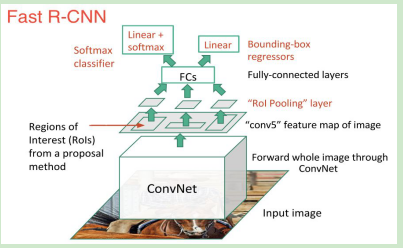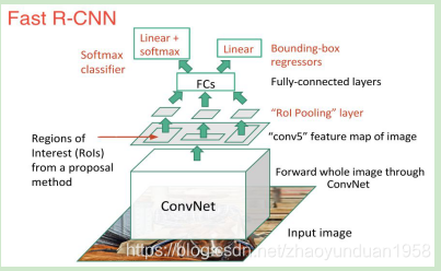 Fast R-CNN基本思路:采用selective search提取2000个候选框RoI;使用一个CNN对全图进行特征提取;使用一个RoI Pooling Layer在全图特征上提取每个RoI对应的特征;分别经过为21和84维的全连接层。