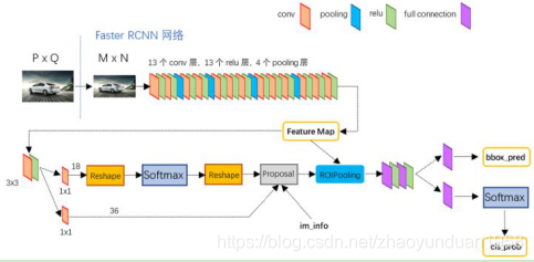 Faster R-CNN由共享卷积层、RPN、RoI pooling及分类和回归四部分组成。