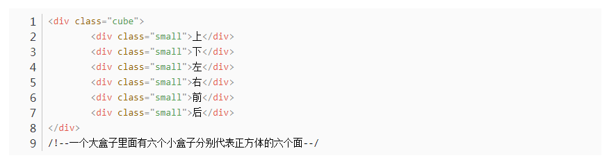 首先是我们的HTML结构,我们这里只写一个立体正方形.