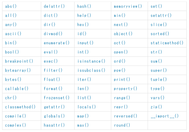 内置函数是指从一开始就在Python程序中设置的函数。 从你创建程序的那一刻起,你就可以使用有用的功能。