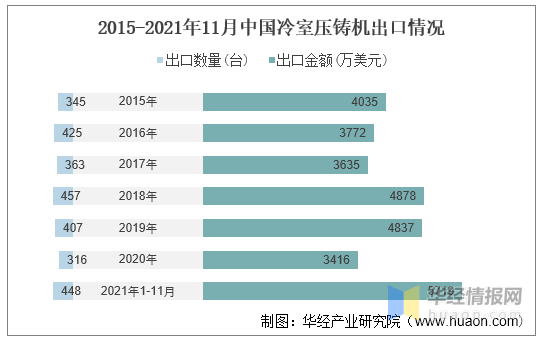 2015-2021年11月中国冷室压铸机出口情况
