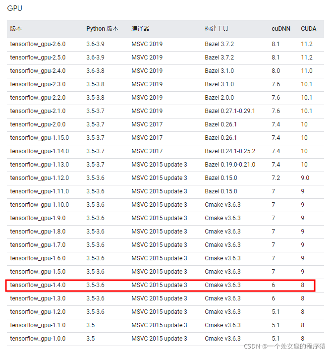 3、第三步,查看已安装的cuDNN和CUDA版本,及其所对应的tensorflow_gpu版本