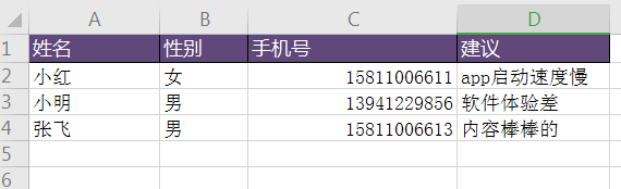 我们即将要从Excel中处理的数据长这样: