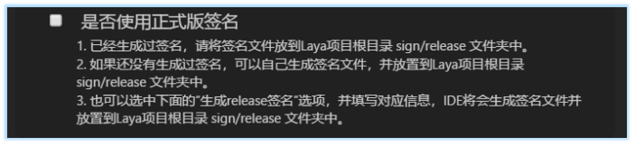 - 是否使用正式版签名: