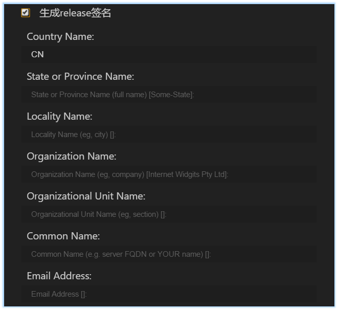 这个需要你有签名文件的,这个签名文件啊,,emmm,你就当它是系统生成的一个验证文件就行了,一般来说你刚对接新项目的话应该是没有签名文件的,那就得先使用下面这个“生成release签名”了。 - 生成release签名: