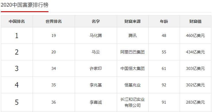 打开了熟悉的中国首富排行榜,果然,还是我最熟悉的马爸爸排在第一。