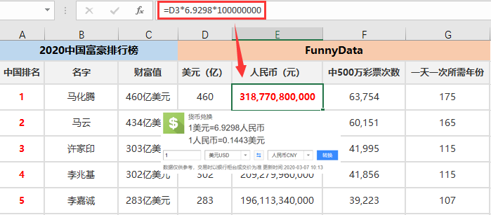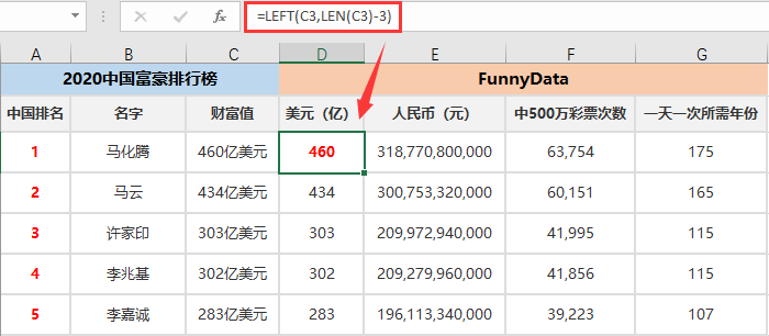 折算人民币再看看,先用一个left+len公式,把金额数值提取出来