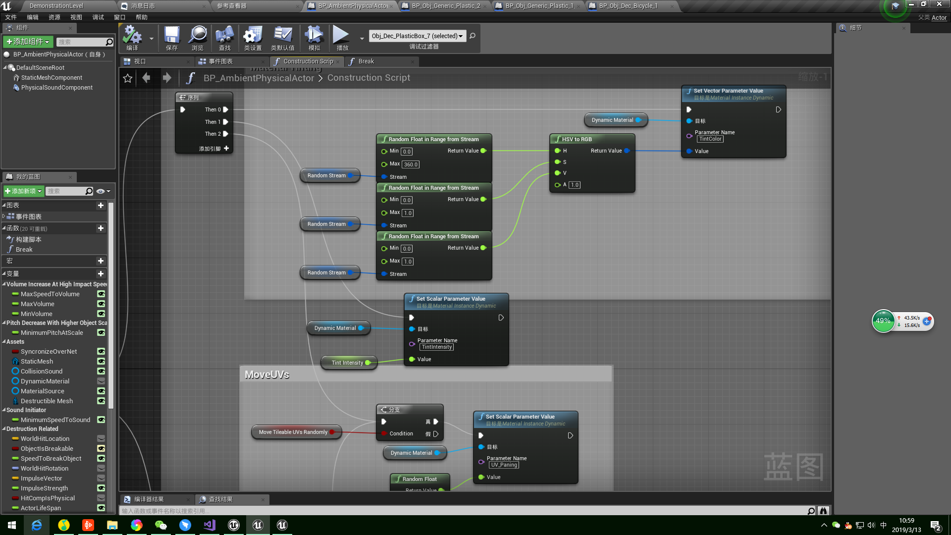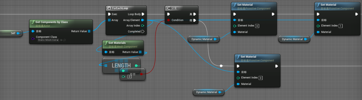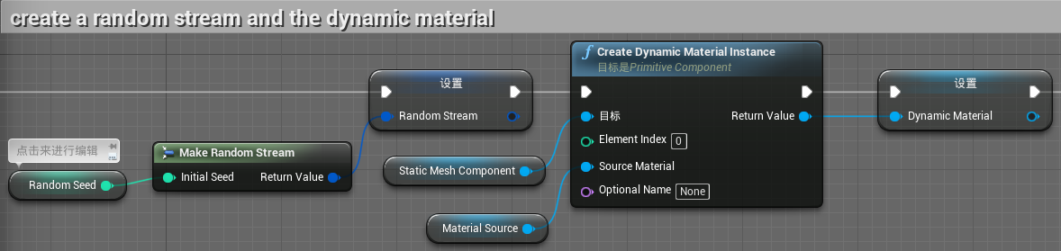 如果是,对动态材质参数TintColor和UV_Paning和TintIntensity设置随机变量,如果否,则设置为默认参数变量