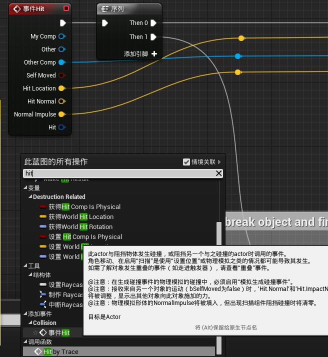 它这里调用的Hit,不是StaticMesh的On Component Hit,而是Collision的Hit回调