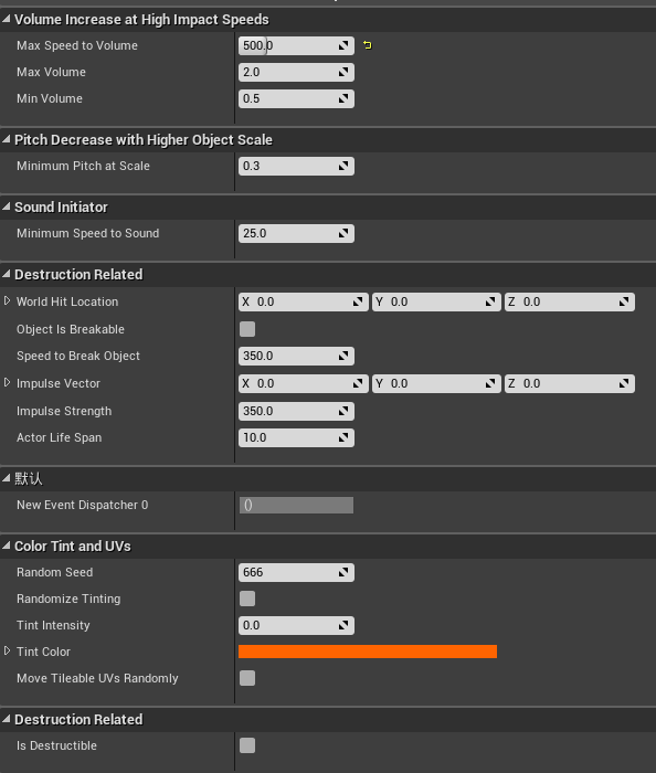 保存了HitLocation等信息,如果Mesh速度大于可破碎速度,就调用Break方法,如果速度大于最小声音的速度,就调用PlayCollisionSound方法