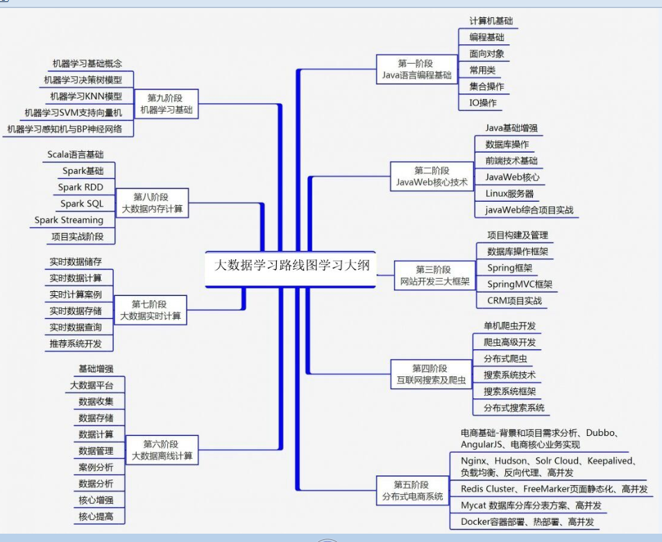 对于大数据开发的学习,重在掌握基本知识以及实践应用,合理安排基础知识的学习,可以起到事半功倍的效果,以下是比较经典的大数据开发学习路线: