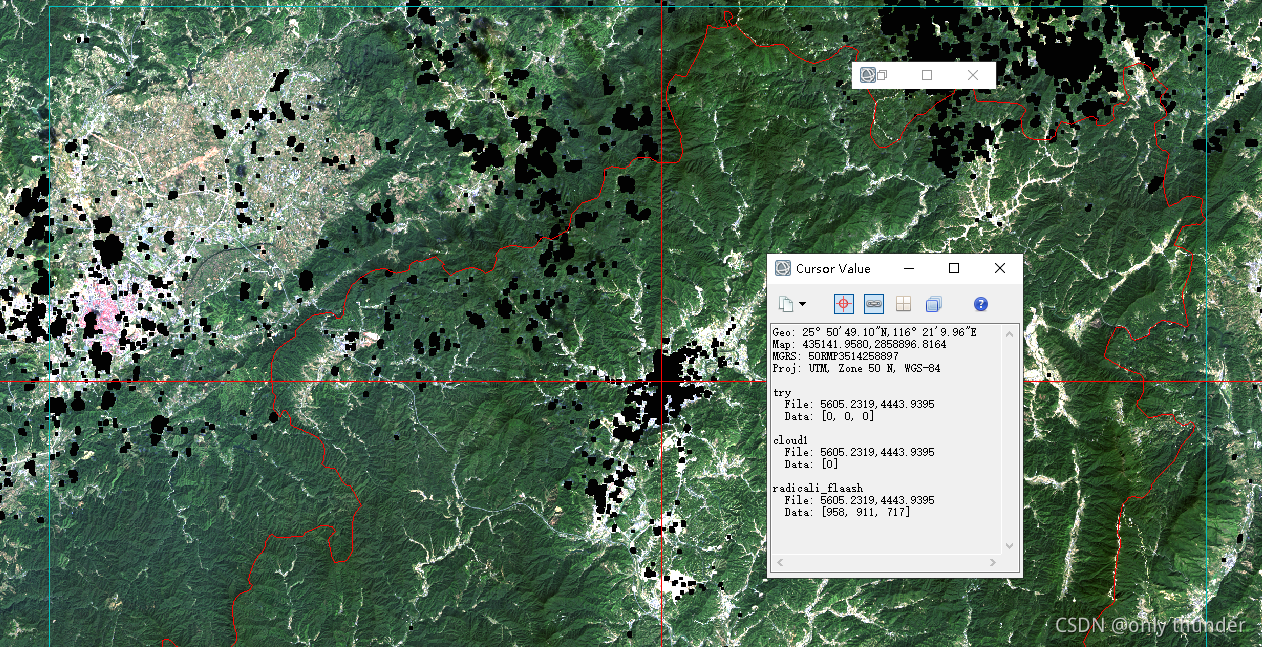 在提取出云后,分别对两景影像进行辐射定标,大气校正,裁剪。