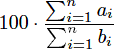 在某个课程中,你要参加n次测试。如果您在测试i中通过bi问题获得了正确的ai,则您的累积平均值定义为