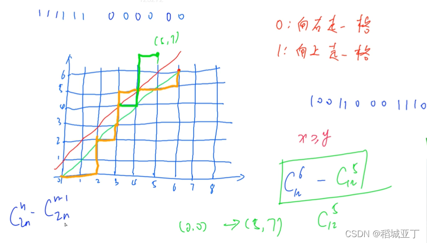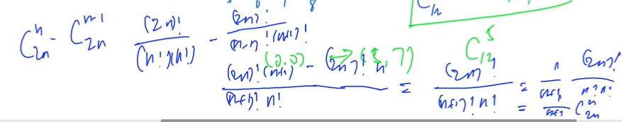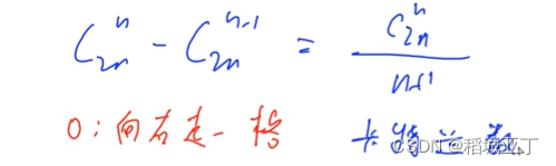 给定 n 个 0 和 n 个 1,它们将按照某种顺序排成长度为 2n的序列,求它们能排列成的所有序列中,能够满足任意前缀序列中 0 的个数都不少于 1 的个数的序列有多少个。