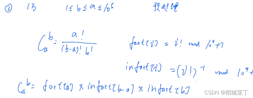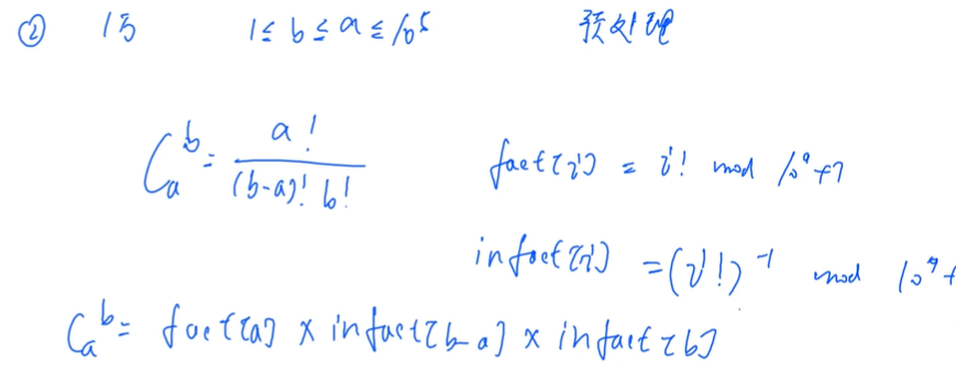 #include using namespace std;const int N=100010,mod=1e9+7;typedef long long LL;int fact[N],infact[N];int qmi(int a,int k,int p)//快速幂求逆元
