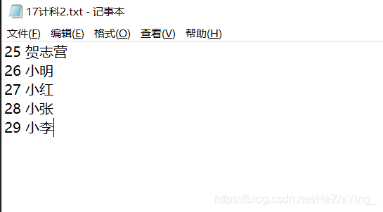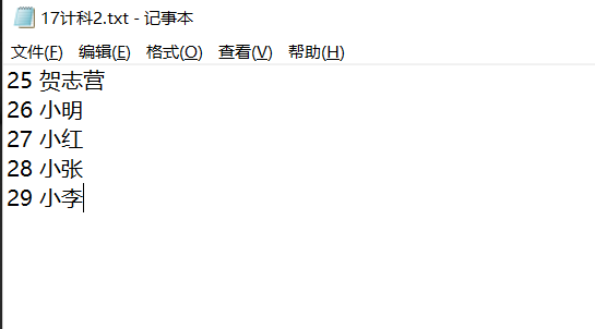 在使用该系统之前,请先在你程序保存的位置建一个17计科2.txt文档,里面填上学号和姓名,例如:25 贺志营。