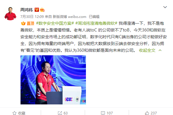 周鸿祎称微软抄袭 360 安全模式后发文否认