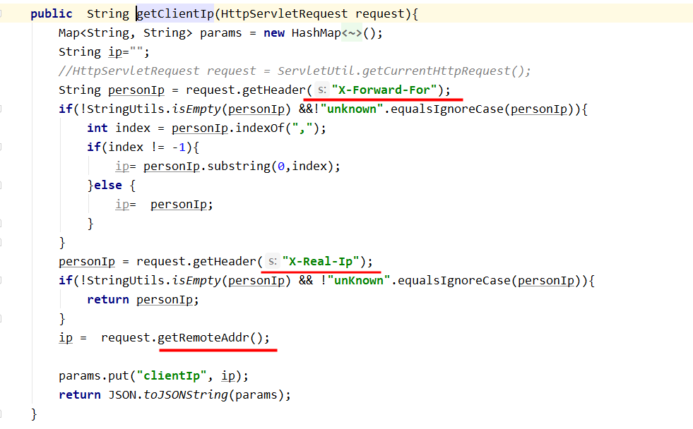 request.getRemoteAddr() 获取ip 如果存在代理服务器, 获取的是代理服务器的地址