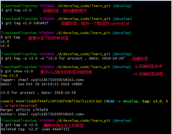 为什么git 要有标签(tag)这个概念? 为了便于查看啊,在某个时间点,比如我2018-10-28 有一个新版本要发布,在这个时间点上肯定有一个 commit id 最新的提交 表示这个版本, 但是,你是愿意看一个 v1.0 表示这个版本,还是愿意看一串 4hy79igf.... 这样一个40个十六进制长度的字符串呢?另外一个原因,标签也便于管理